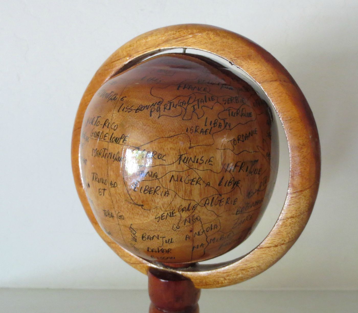 But I have to admit when I picked up this wonky, handmade wood globe at Goodwill, even I shook my head. Made in Haiti, its geographical interpretation of the world has no basis in reality and the globe was…well…lumpy.