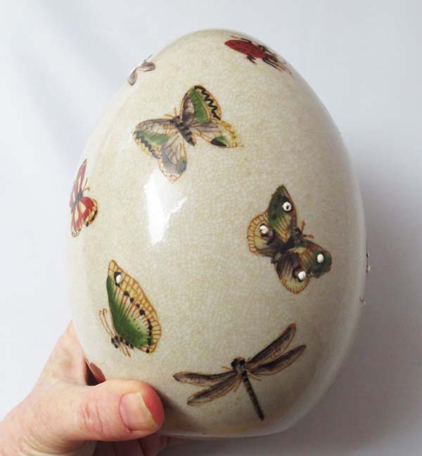 FREEBIE ALERT!!! And I am offering to anyone who wants it, this weird lovely ceramic egg thingy with hand-painted butterflies and bugs. It’s 7″ tall. Pickup only. (Just leave me a comment below.)