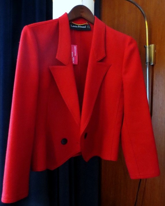 - A vintage Louis Feraud (made in W. Germany) red wool jacket bought at a Housing Works on W. 17th St. The jacket is in wonderful condition.