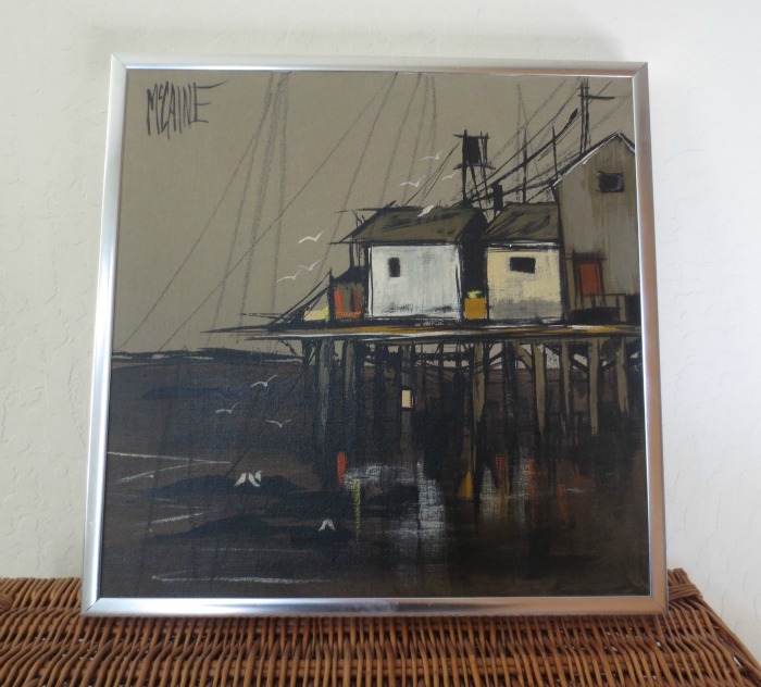 But who was McCaine? This is one of the parts of thrifting that excites me..researching and learning about the stuff I find. After digging around here’s the skinny on McCaine. He lived in Palm Springs, CA, and painted contemporary pictures in the ’60s and ’70s.  In this article from “Palm Springs Life,” we learn that “His colors are fresh, the combinations unique and the hues strong and exciting.” His paintings were on continuous showing at Aaron Brothers Gallery.