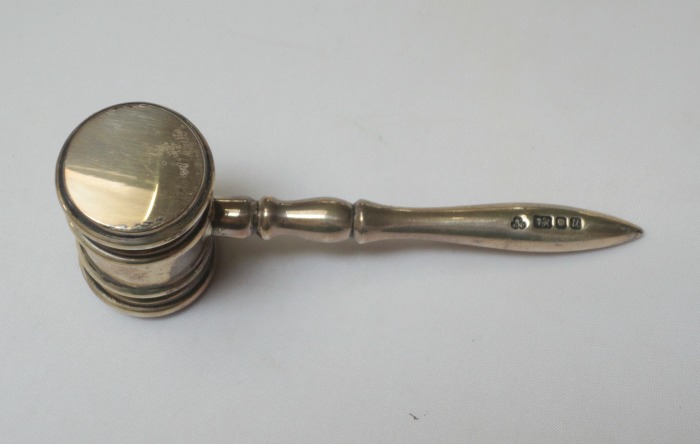 I was doing my usual circuit around the store when I got to the aisle with the metal stuff and I picked up a little silver gavel. Then I noticed, with a gasp, that it was fully hallmarked for British sterling silver! And the price…the price was just $3.37!! What??!!