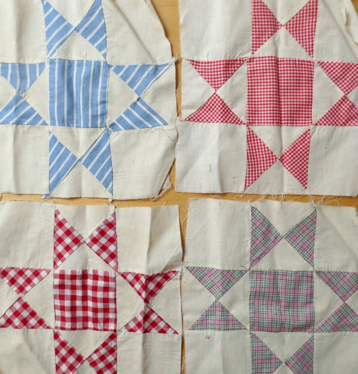 Thankfully, there are some pieces that I might use to make a pillow, like these small “Sawtooth Star” squares.