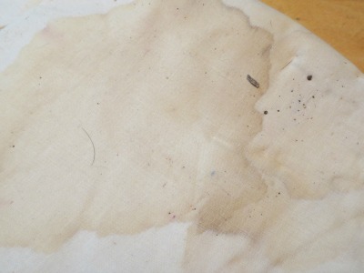 But lest you think it was all fun and games and good fortune, I encountered some “ick” factors too…stains, dead bugs, crusty bits, cat hair and a musty smell that started to make me a little sick. This piece of muslin, along with some other damaged pieces, quickly went back in the bag and were set outside to go in the garbage. Some things just aren’t worth trying to save.
