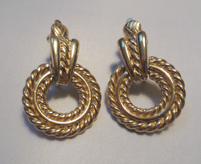 I think these gold-tone Trifari clip-on door-knocker earrings are quite handsome and very wearable.