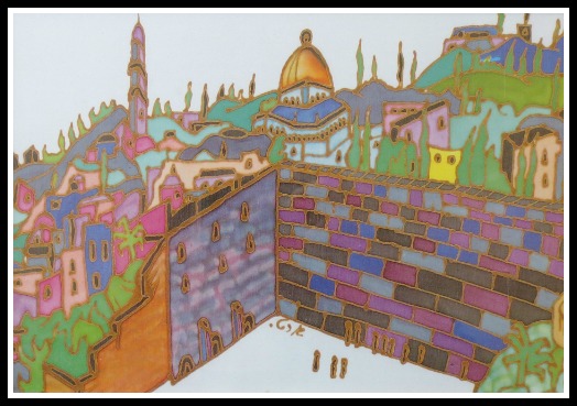 • I found a small framed art print of Jerusalem. It was done in the style of Egbi and I decided the only way to find out more about this piece was to remove the paper backing, take it out of the beat-up frame and extricate it from the matting. I was hoping to find a signature and possibly a print number under the matting. I didn’t. It’s a neat piece, but probably not worth anything. It was a gamble that went bust. 😦