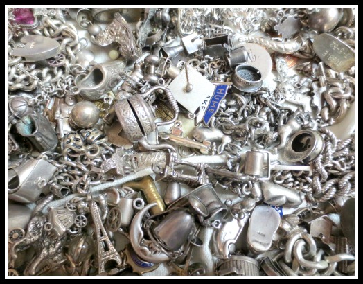 This week I decided to focus on silver charms since I have so many from both my personal stash and from the wonderful vintage bracelets I bought to “harvest.”