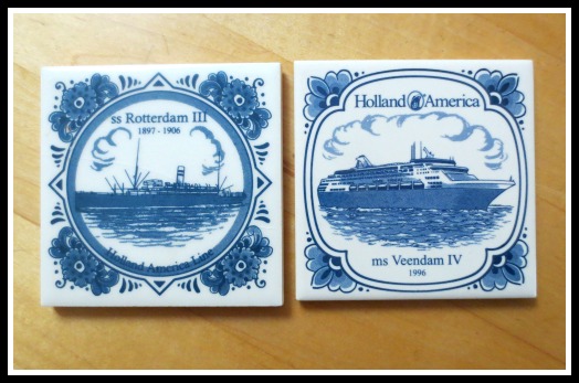 And I bought this lot of eight Holland America delft coasters, some dated, some not. But it turns out they weren’t worth much and I had paid $8.75 so they went back for exchange too!