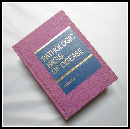 Here’s the first thing I put in my bag…an eight-pound 1974 medical textbook called the “Pathologic Basis of Disease” by Stanley Robbins who dedicated the book “To Sarah To Alexander to To Katherine with love.” (Gee, Dad, thanks!) The book has since had many revisions and reprints so this version (possibly a first) may not hold much value in the medical community. Still I think it’s worth a try. Plus it might come in handy during a zombie apocalypse.