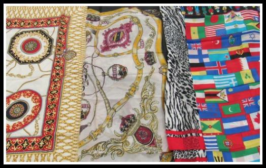 Now scarves are a pretty standard item. Nothing mysterious or unique. And I don’t go out of my way to buy them but this particular online auction was for a lot of 10. Hmmm, at the right price this might be good. Some of them looked quite fun. But the listing didn’t give ANY information about any of them. No size, material content, condition, maker info. Nothing. Oh jeez…should I take the risk?