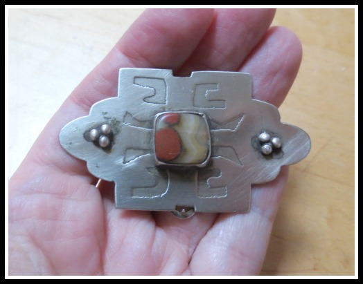 I did spot this well-made oddity with a captivating Arts & Crafts design (reminiscent of Ruskin brooches!) and decided to take the risk, hoping against hope, that it might be unmarked sterling silver.