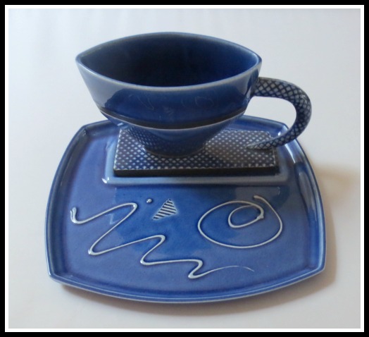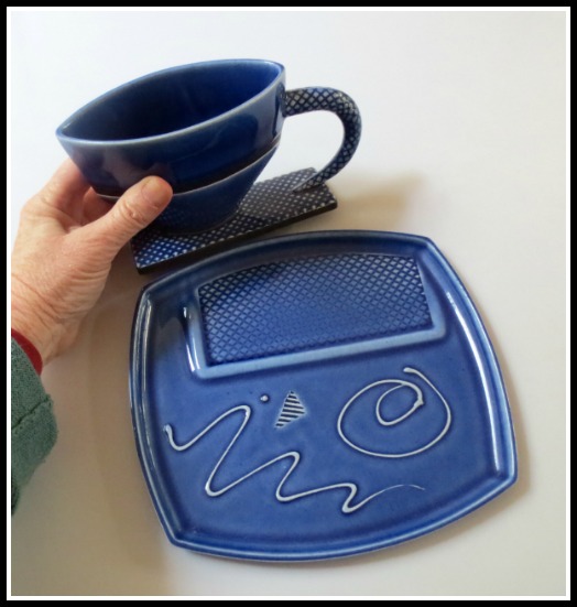 In the end, this thrift store trip yielded just one thing– a whimsical, artisan-made ceramic set of two coffee cups and two plates. They looked like something belonging in Alice in Wonderland! The cups are fabulously wackadoodle.