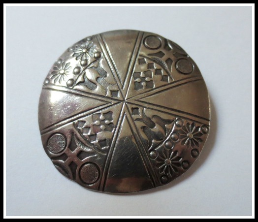I was also drawn to this sterling silver stamped brooch with a Scandinavian-looking design. Isn’t this fabulous?! It’s unmarked and unsigned (alas, alas) making it difficult to figure out exactly how to attribute it. But it was so unusual I couldn’t pass it up.