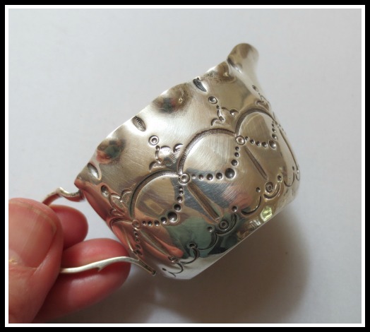 I’ve also had some online finds that please me. I bought this tiny sterling silver creamer from an eBay seller. It’s British and hallmarked for 1865! Love that.