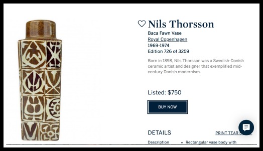 Turns out it’s by Nils Thorsson. I found a similar one for sale on Sotheby’s for $750! What?! Is that realistic??