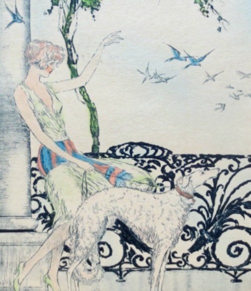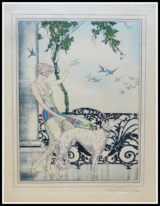 Inside there’s a note that reads “This Original Impression from a copper plate Made by the Parisian Etcher, Monel L. Angelikis….” So far I haven’t found any thing about him except there was Monel Angelikis who was born in 1904 and died in Los Angeles in 1982. I’ll need to do more research before I can price this.