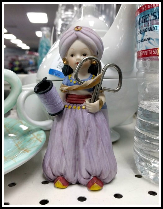 My last three visits to my local neighborhood thrift store have been empty-handers and I haven’t found anything worth buying. Wait, I take that back. I did find a very unusual figurine but it was priced at $6.99 and I left it behind. That was a mistake. Should have bought her!