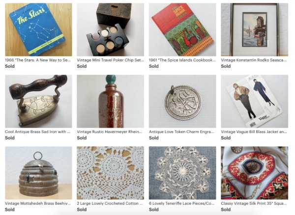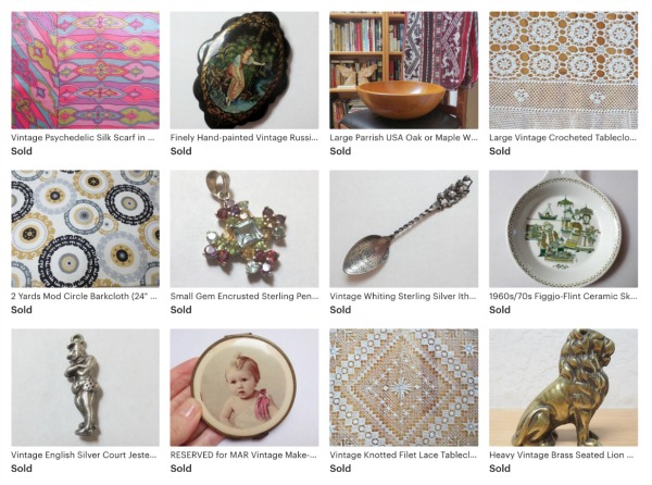 Jewelry (6) and books (4) sold on par, though I always wish sales were healthier in these areas. Unfortunately there’s a ton of online competition in jewelry. A ton. And likewise the online secondhand book market is a tough one, particularly with behemoth Amazon. Despite the fact that I provide photos of the actual book (which are not provided for secondhand books on Amazon) and have free shipping as well. Still I love books and will always have some quirky ones in my store.