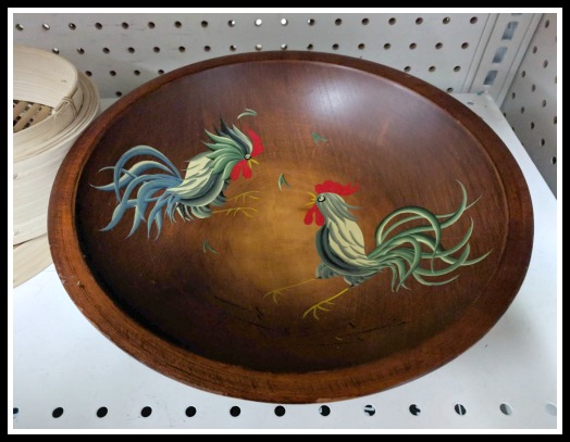 I wanted to buy this Munsing wood bowl with painted roosters which was in fabulous condition except it was missing one of its three feet. Poop!