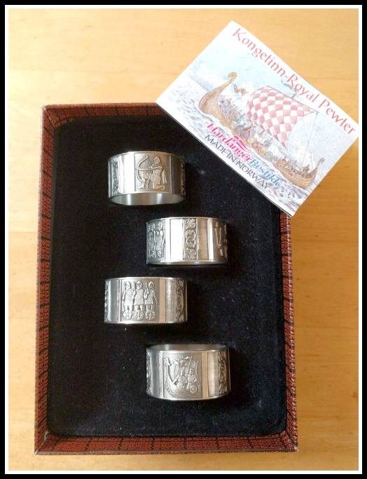 I also couldn’t resist these Norwegian pewter napkin rings with Viking scenes.