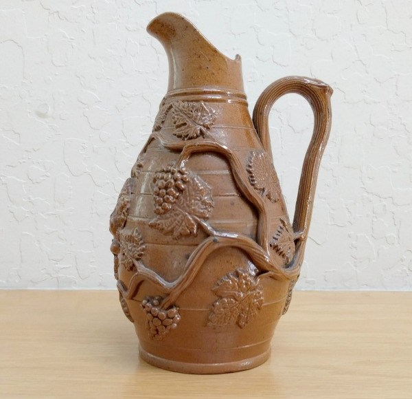 But my best find, just this past weekend, was one that I knew nothing about, but felt in my gut it was a good thing–a pottery jug with applied leaves and grapes. It was interesting and well made.