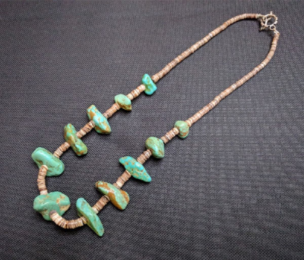 I thought this Southwestern-style shell and turquoise nugget necklace was fabulous. The turquoise had such beautiful matrices. (Back at home I tested a small area of turquoise with nail polish remover to see if it had been dyed and it hadn’t. Yeah!)