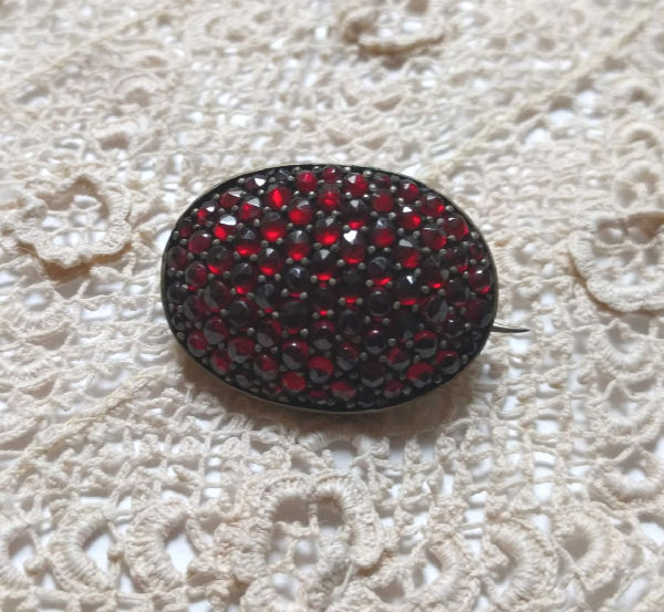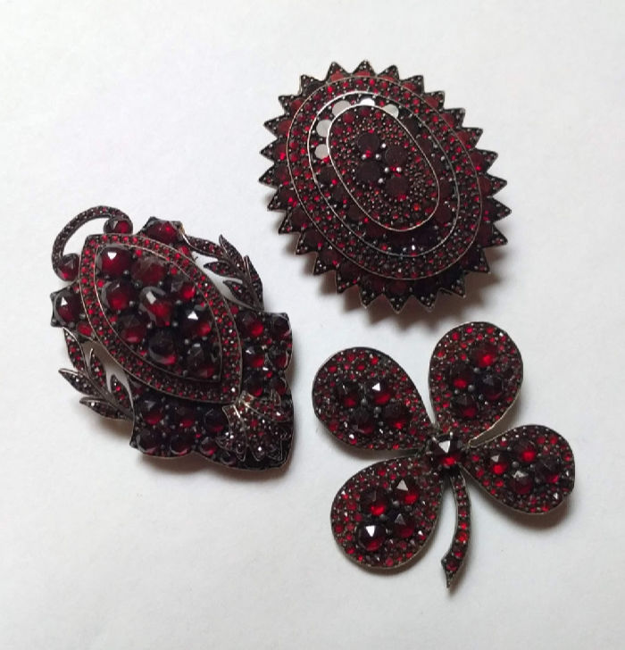 I adore old bohemian garnet jewelry. The stones in these pieces are noted for being deep red with a lot of fire. Typically small, they are set close together giving items a fabulous “encrusted” look. Sourced for hundreds of years (in what is now known as the Czech Republic), the mines are mostly tapped out so newer pieces claiming to be bohemian garnet are likely not. (Buyer beware.)