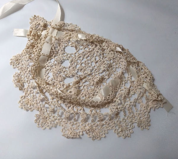 This net lace capelet that slips over the head is…interesting! After doing some research I believe it’s circa 1920 to 1930. Ladies would toss this over a satin sheath dress.