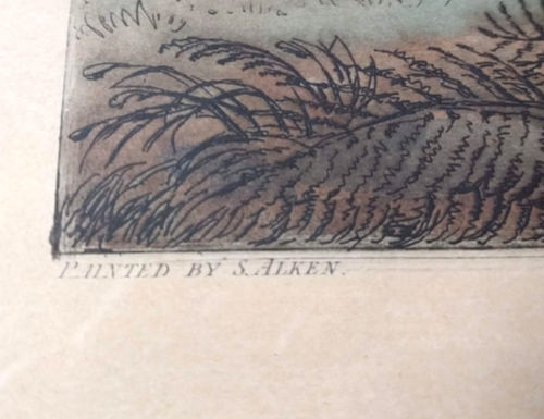 Samuel Alken (1756-1815) was an English artist with a penchant for aquatints. Of his children at least two became artists as well: Samuel Jr. (1784-1824/25) and Henry (1785-1851), who became the most prolific and commercially successful. (You’ll find many Henry Alken engravings available for sale.)