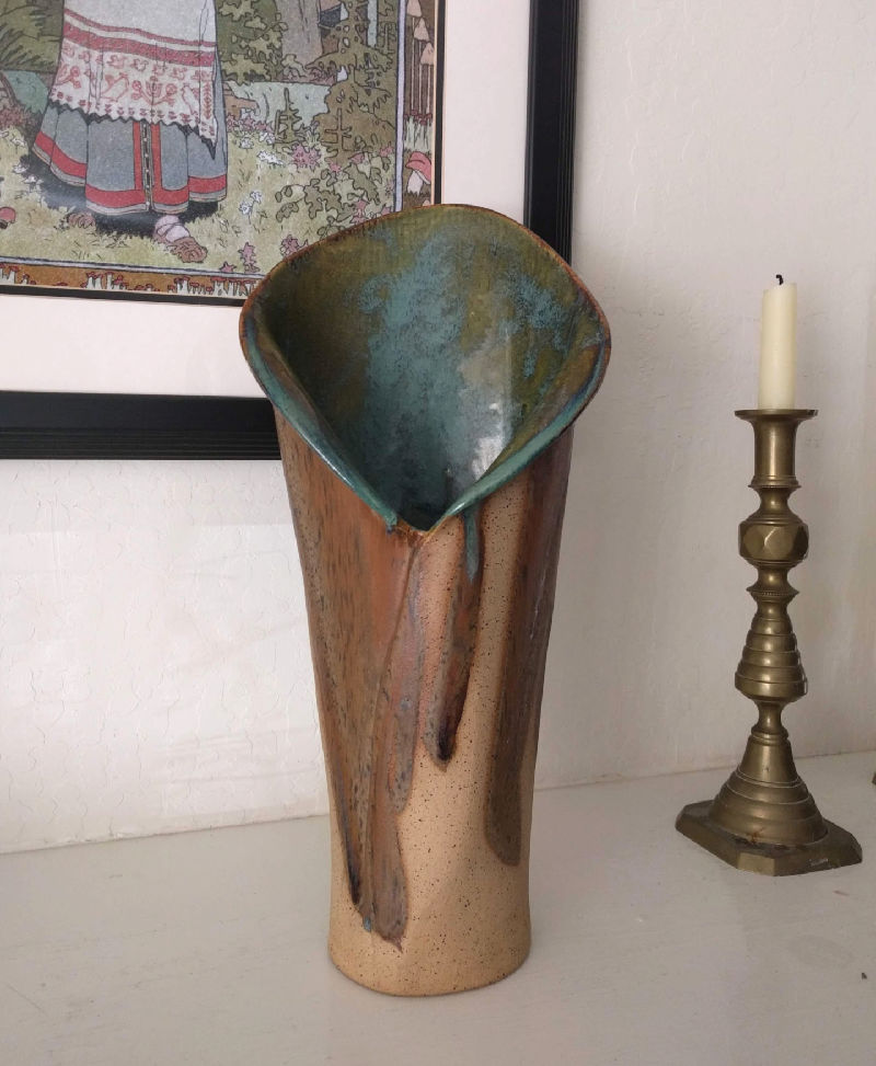 I also bought this striking extra large calla lily vase. It’s a textured, slab piece and so organic. It looks intriguing without any branches or blooms.