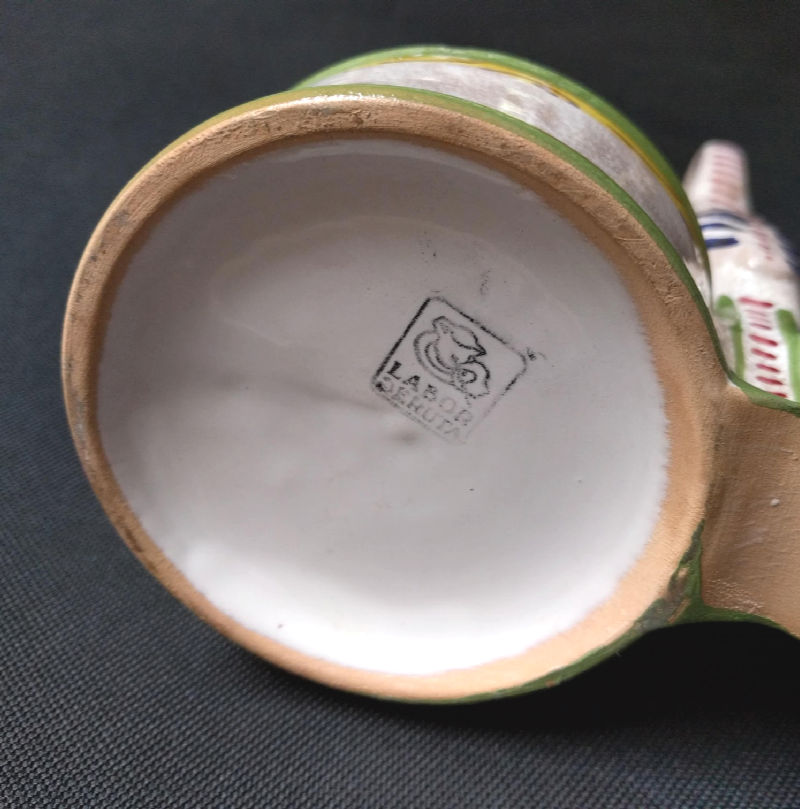 I bought another Italian piece, this one a “Labor Deruta.” This particular piece, a caddy, likely came with containers for oil and vinegar. But it’s curious because I’m not finding any that are made with a crane/heron handle. None currently for sale or that have sold. I have searched for several hours now! Not sure what I’ll list this for. Possibly around $60.