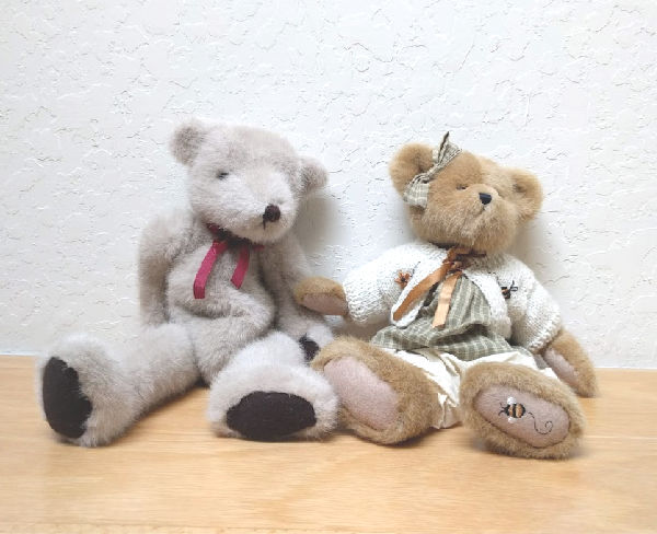 Then at the end of this week of discontent, my beloved aunt died. I had last seen her in October when I visited my hometown in New York state. (I live in California and only get back once or twice a year.) In December I sent her a Christmas present…one of the cuddly vintage teddy bears I’d bought that fall. (The one on the left.) I don’t normally do that. I hope it made her smile in those last weeks. I shall greatly miss her.