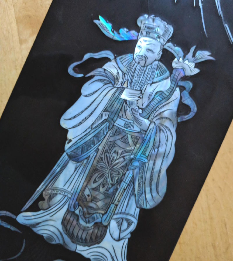This past week I found these four black lacquer plaques (15.5″ tall) with abalone inlay. I don’t buy many Asian goods with my limited knowledge, but I thought there might be a market for these. What really sold me was the incredible flash in the abalone. They appear to be circa 1960s-1980s.