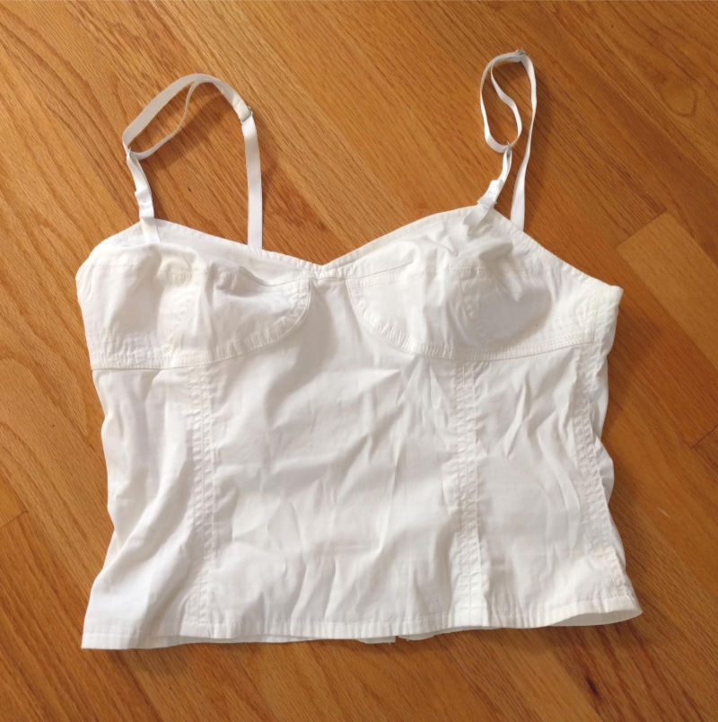 I bought this at a yard sale four years ago and paid way too much! Despite being a generous Euro size 42, it’s quite small and would like only fit A-B cups. It has a great retro look, but is more recent.