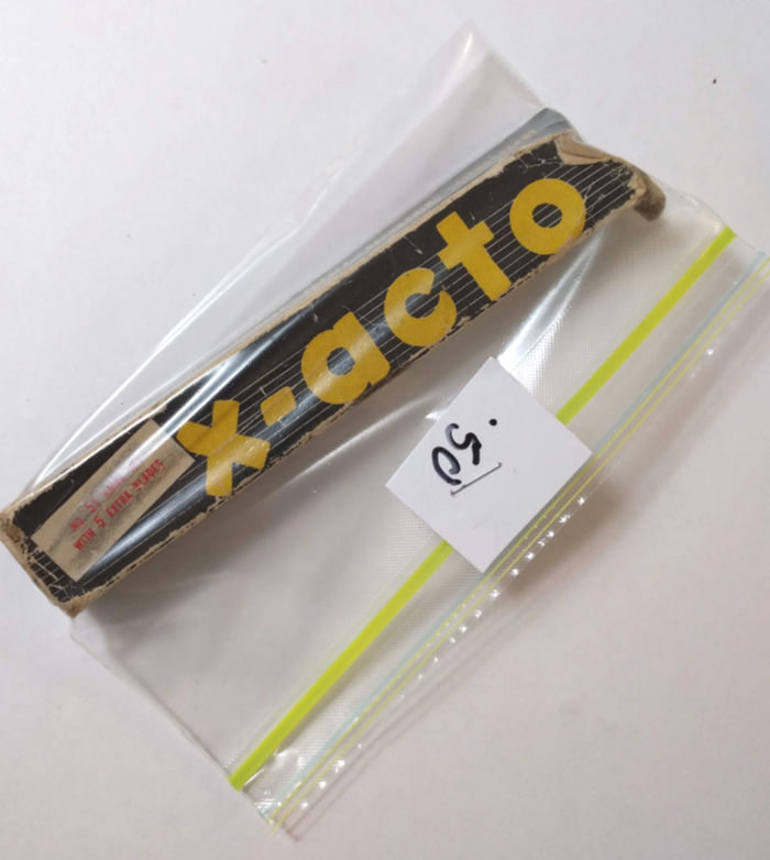 I also bought a vintage x-acto knife for 50 cents. I liked the graphics on the box and envisioned a knife with a cool bakelite handle. Alas the knife was in rough shape and no bakelite handle. Rats!