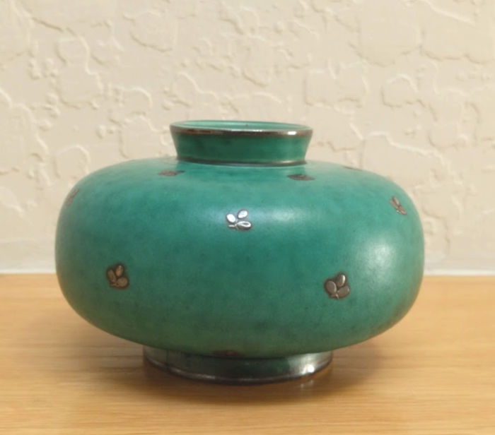Another Swedish find was a fantastic Wilhelm Kåge, Gustavsberg, Argenta ceramic vase decorated with inlaid silver leaves. I walked by this twice before it caught my eye, but I’m so glad it did.