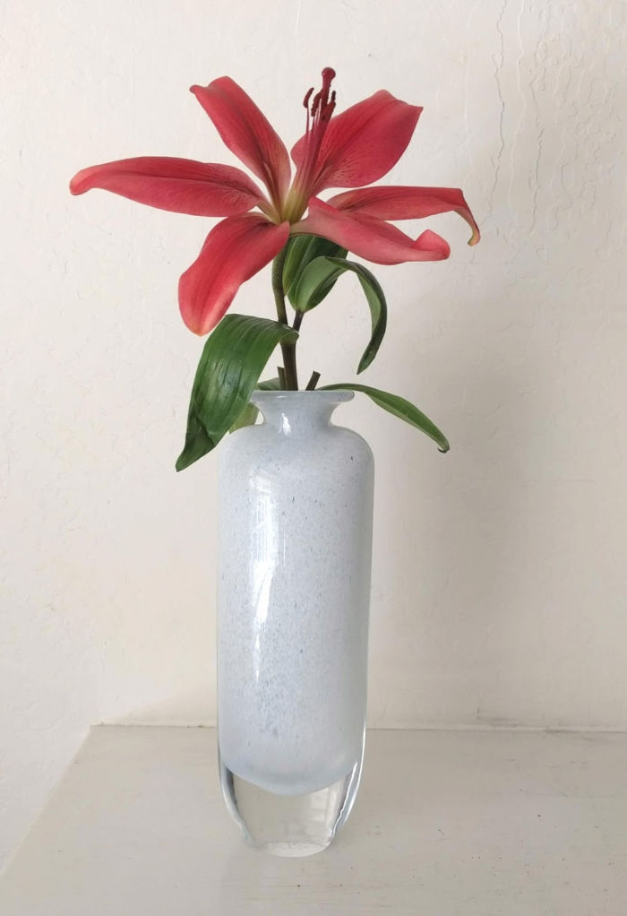 Another day I found this neat signed art glass vase. It took me a while to figure out the acid mark signature. Turns out it’s a Swedish Kosta Boda piece by Kjell Engman. Circa 1980.