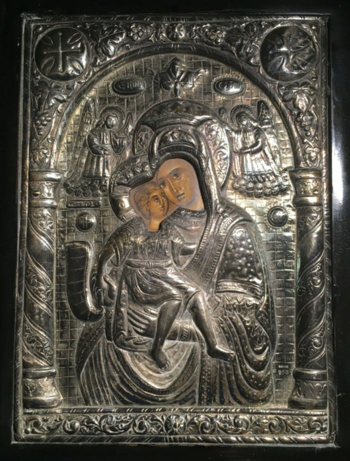 And I am also soooooo grateful for the internet. (Aren’t we all?!!) It’s so wonderful to be able to keep virtually connected with folks and of course conduct little online hunting forays for vintage bargains. Today I focused on religious items like icons and crosses and made a bid on this replica Byzantine icon with a front rendered in 950 silver.
