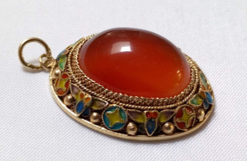 One of my recent sales was this pretty enamel and carnelian pendant–a flea market find. I was pleased this found a new home.