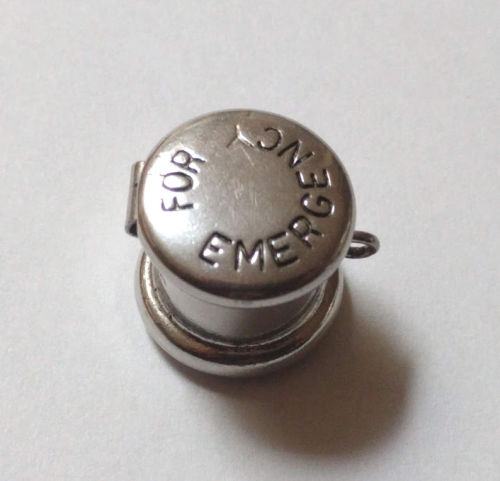 The best charm on this bracelet was the sterling silver For Emergency pill box which opens and is actually big enough to fit a few small pills.