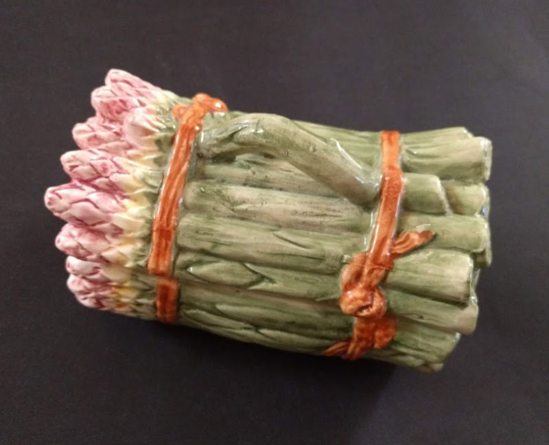 Now I know this majolica ceramic asparagus tureen from Portugal is not everyone’s cup of tea. Honestly, it’s not something I feel the need to own…but there are folks who love this type of quirky kitchenalia. In fact I was with an older friend when she bought a very similar asparagus tureen at an antique store last year.