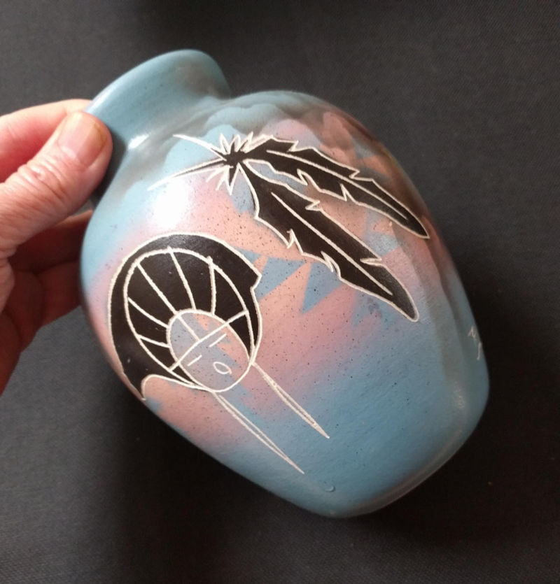 I’m a fan of native american pottery and this one was signed. Did a bit of research at home and discovered that Hozoni pieces are fairly common and most are not valuable. Still it is striking.