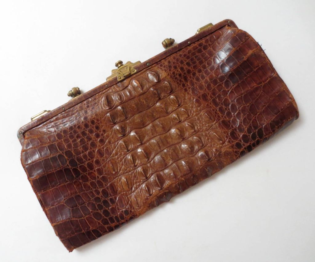 Alligator purse (missing handle and a bit worn) sold after 3 years (PAID $4.00 at garage sale, SOLD for $40 plus shipping)