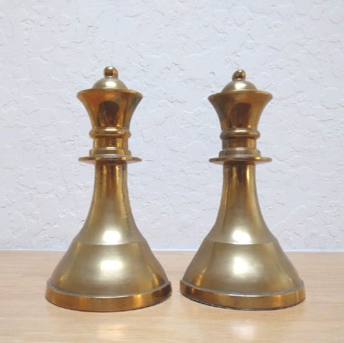 These simple handsome bookends were made in India (likely circa ’60s to ’80s). A neat gift for a chess or book lover. So far I’ve only found one other pair like this online so it appears they are a bit scarce. The other pair is listed at $115 with free shipping. I am listing mine at what I think is a more appropriate price.