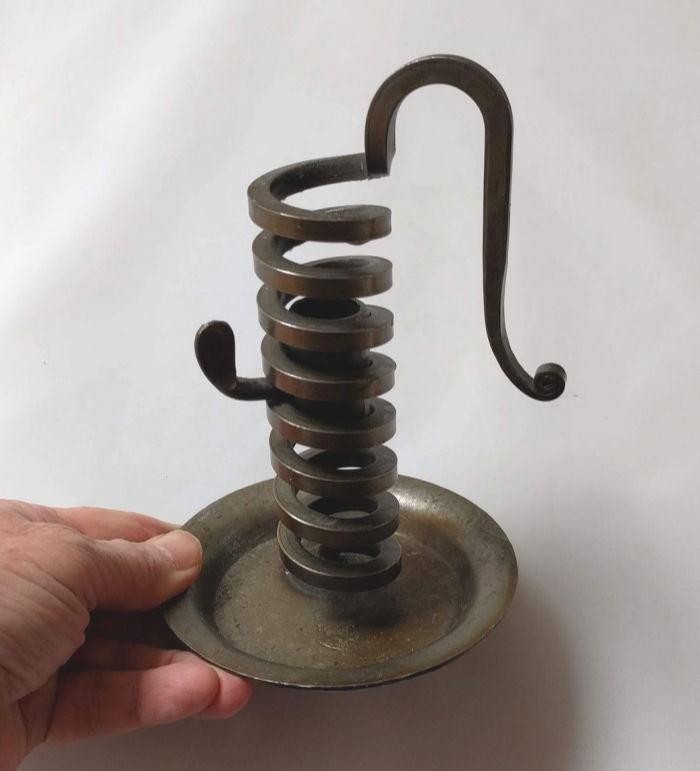 Next I popped this vintage French wrought iron candlestick into my basket. It’s a Michel et Jean-Yves Bouillot Bourgogne piece (#71220) known as a “rat de cave” candlestick. It features a rat-tail handle and a push-up feature and was the type of candlestick used in wine cellars. This has some light wear but nothing egregious.