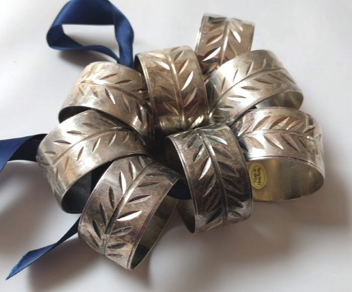 First in my basket were these eight silver-plated napkin rings, made in Hong Kong. I believe these are circa 1960s-1980s. I’ll give them a quick swipe with a silver wipe before listing them at $40 with free shipping.
