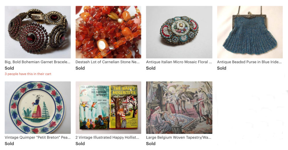 Sunday was also a surprising sales day. By the time it ended, I had received seven orders in my Etsy store! That rarely happens to me. Sold items ranged in price from $15 to $475. So after all my whinging about the summer slump and July being my worst month, this one is turning out okay!!!