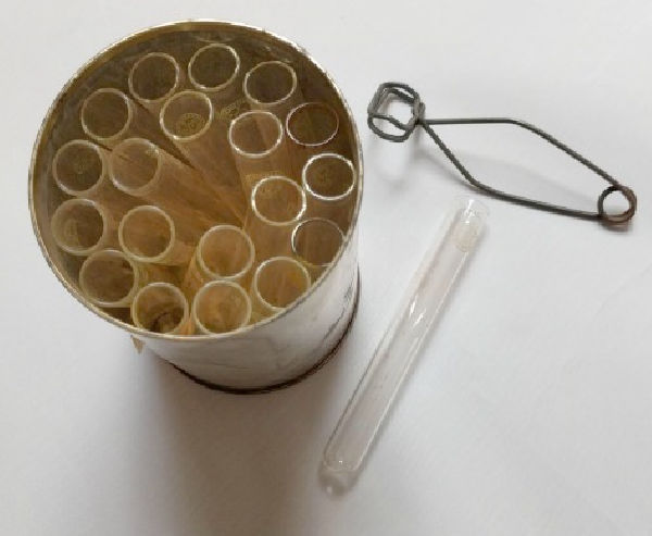 I know it could be argued that this is not foraging, particularly as the items are gathered up for me and I usually pay at least a nominal amount for them. Still, it does take doggedness, curiosity and an “eye” to pick the things worth saving. For example, last year I went to the second day of an estate sale only to find that the house had been fairly stripped bare on the first day. But I went around (and around) looking at the remaining bits and was happy to find this old soup can full of vintage Pyrex test tubes. No one else had given them a second glance.