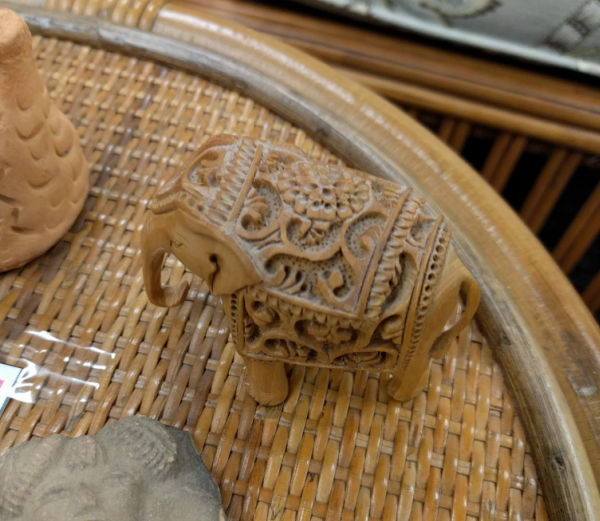 I picked up this little carved elephant three times. I thought the carving was so beautiful. But it was one of those handicrafts that could be modern and made by the thousands for all I knew. In the end I left him behind with a bit of regret.