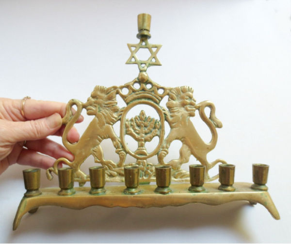 Vintage brass Lion of David menorah. Just a nice, well used, classy piece.