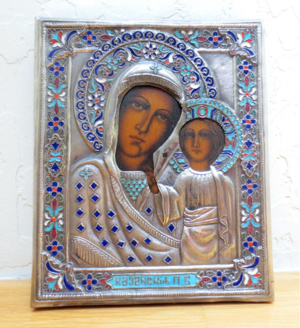 I’ve also dipped my toe into the antique Russian icon market by buying two lots of miniature travel icons (approx. 1.5″ wide) fronted in 87.5 percent silver (marked 84). The seller specializes in Russian icons, medals and such, though oddly he didn’t share any details such as maker or city of origin on these tiny pieces which are hallmarked.